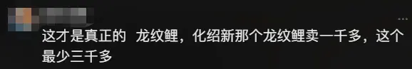 不过今天这个视频看评论区网友的说法,似乎龙纹鲤的报价不算太夸张。