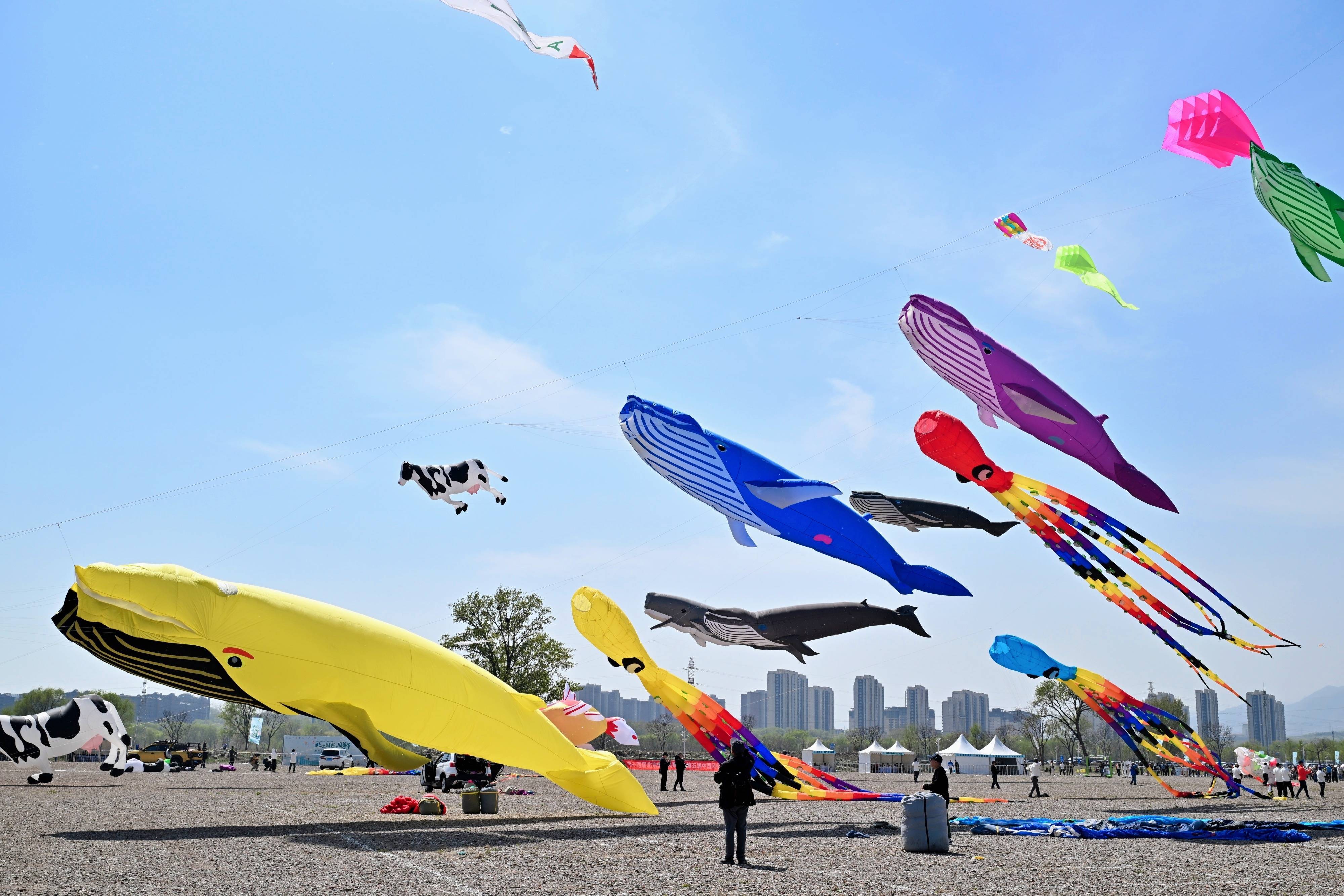 第十四届北京国际风筝节现场。新华社发4月11日至12日,第十四届北京国际风筝节暨第五届中国风筝锦标赛在北京园博园举办,来自国内外的15支风筝代表队同台竞技,在40000平方米的专业赛场中展开8大竞赛项目的“长空角逐”。